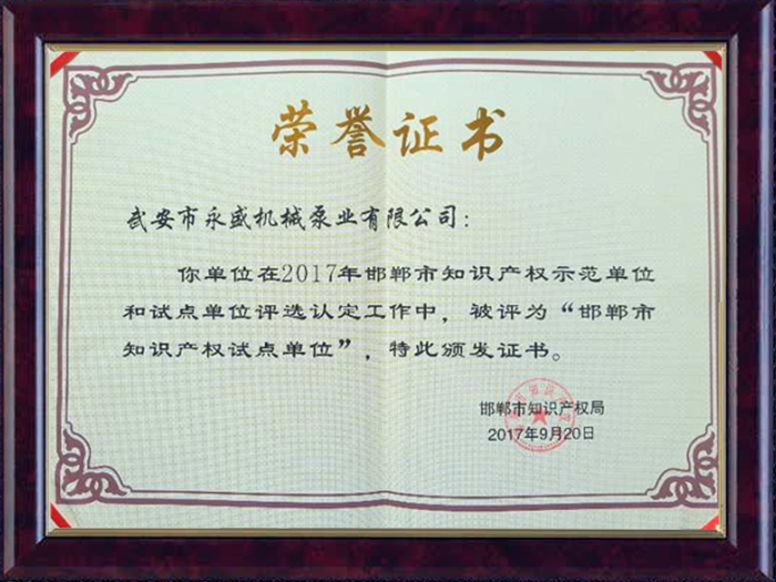 知識產(chǎn)權(quán)試點單位證書